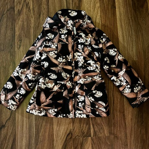 Name it Lasten takki, koko 122, keltainen väri. Takissa on kuviollinen pintamateriaali, jossa on rakennuskoneiden ja liikennemerkkejä. Sopii pojille.