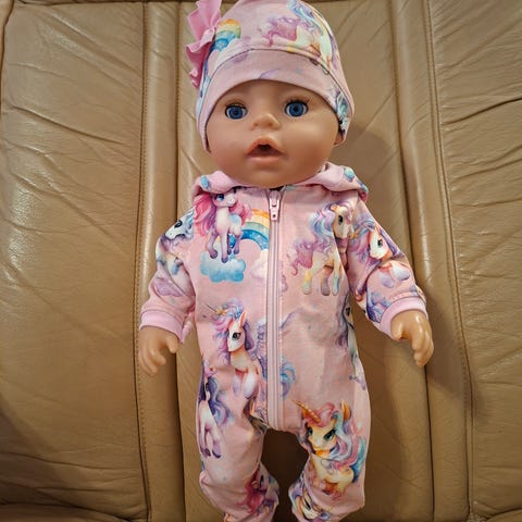 Ompelemani Baby born 43cm haalari hupulla ja pipolla. Vaatteet ommeltu trikoosta tai joustocollegesta. Setti sisältää nuken päällä olevat vaatteet. Samoilla posteilla tulee useampi setti, (2–3 settiä). Löydät vaatteeni Lean Baby born 43 cm vaatesetit- nimellä. Jos haluat samaan lähetykseen useampia settejä, tarjoa yhden setin kohdalla haluamistasi seteistä niiden yhteissummaa. Nouto myös mahdollinen, Oulu.