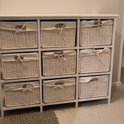 Valkoinen korkeakiilto lipasto. 4 + 4 vetolaatikkoa. Laatikot aukeavat täysin ulos mikä helpottaa isojenkin tavaroiden säilyttämistä laatikoissa. Laatikoita voi korkeussäätää viimeisen kuvan ruuvin avulla. Laatikoiden sisämitat: syvyys 39cm, leveys 62cm ja korkeus n.16cm. Korkeus ilmoitettuna tavaroiden maksimikorkeudelle.