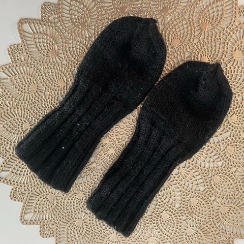 Huomioitavaa: molempien peukaloiden alta villa on hieman ohentunut (näkyy viimeisessä kuvassa), mutta lapaset ovat täysin ehjät ja edelleen hyvin käyttökelpoiset.