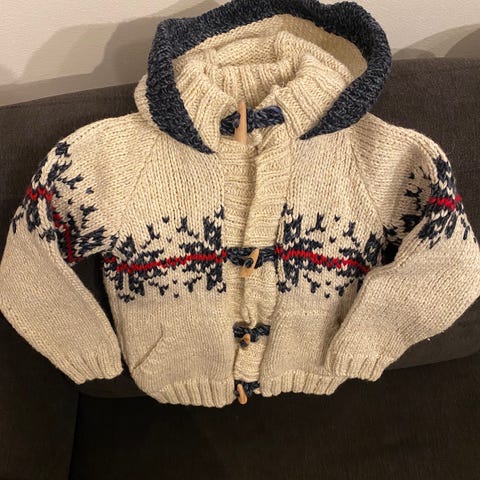 Käsinneulottu uudenveroinen / käyttämätön vaaleanruskea lasten villapaita.