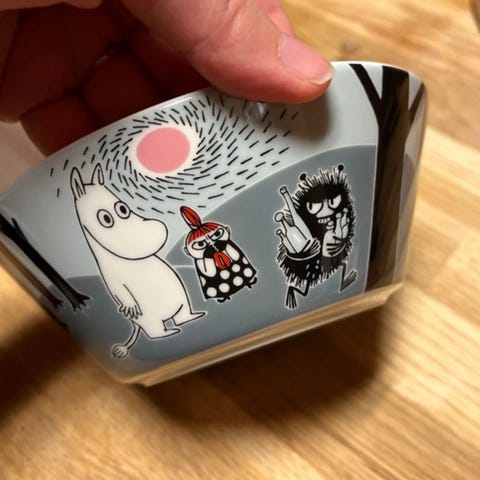 Arabia Muumi kulho 15cm, sininen väri. Posliininen astia, jossa Muumi-aiheinen kuvitus. Malli Muumipeikko ja Niiskuneiti. Uusi, käyttämätön vielä tarrat