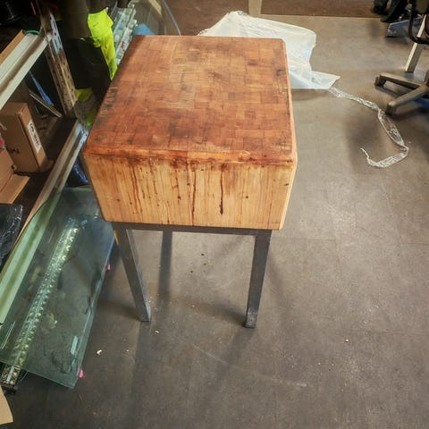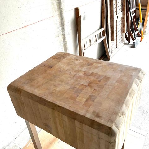 Upea, täysin kunnostettu, lähes peilisileä, erittäin painava lihatukki. Tukin pohja jätetty käytetyksi. Juuri öljytty. Säädettävät teräsjalat. Mitat: 25,5 x 41,5 x 50,5cm. Kokonaiskorkeus 85cm, säädöllä muutama sentti lisää.