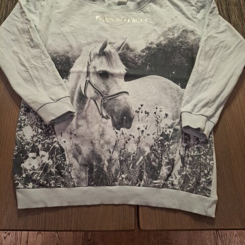 Myydään käyttämätön vaaleansininen heppapaita koossa 134.