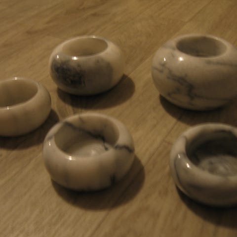 Rottingit Hyvässä kunnossa. Sisällä paksusta lasista purkki, joissa osassa steariinijälkiä. Itse olen kynttilöitä näissä polttanut.