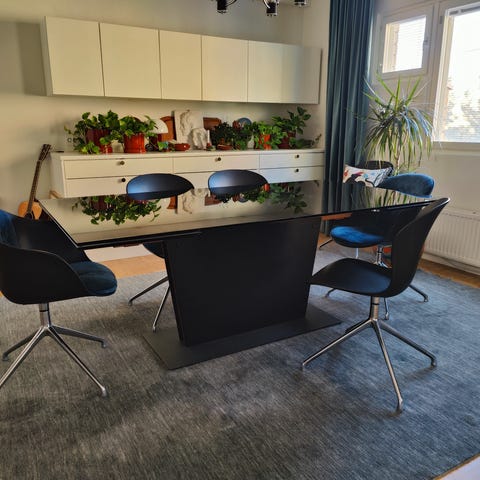 Hyväkuntoinen ja helppokäyttöinen jatkettava ruokapöytä. Pöydän pöytälevy vaihdettavissa ja pöytä on kätevä purkaa osiin kuljetusta varten sekä helppo kasata.