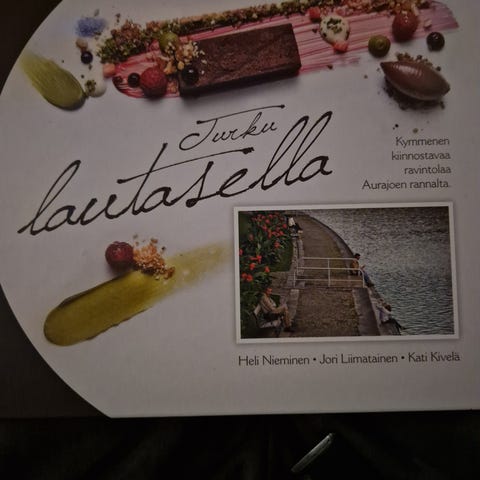 Turku lautasella -kirja esittelee 10 mielenkiintoista Turun Aurajokirannassa sijaitsevaa ravintolaa. Kaikkia yhdistää sijainti joen tuntumassa sekä kiinnostava, historiallinen miljöö.