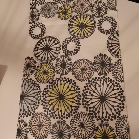 Vallilan Hehku-kaitaliina vaaleansinisellä pohjalla.