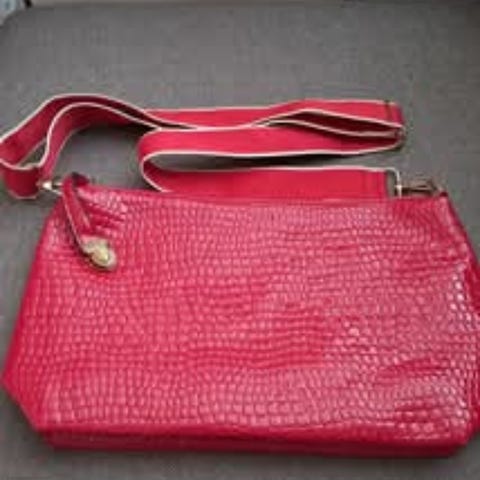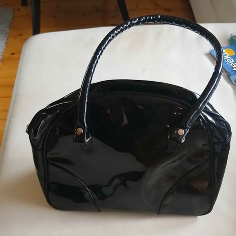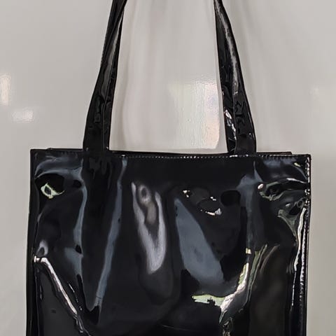 Pinkki kiiltonahka laukku, koko 35 x 23, siisti kunto vähällä käytöllä ollut, sisältä puhdas ja tahraton.