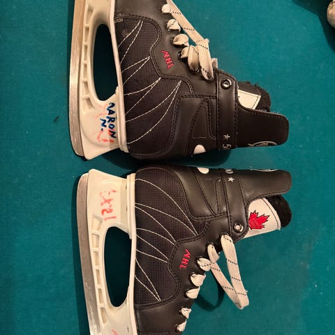Annetaan hokkarit, kokoarvio 42 (ei kokomerkintää). Sisämitta 27cm. Kärjissä kulumaa (katso kuvat).
