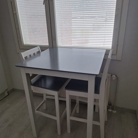 Pöytä ja kaksi tuolia, virheetön kunto. Nouto aseman läheisyydestä.