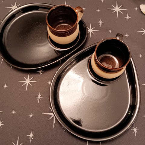 Myydään 2 aamiaissettiä, Kermansavi. Hyvässä kunnossa, ehjiä ja siistejä. Pakettihinta kummallekin setille 5e. Vain nouto.