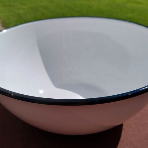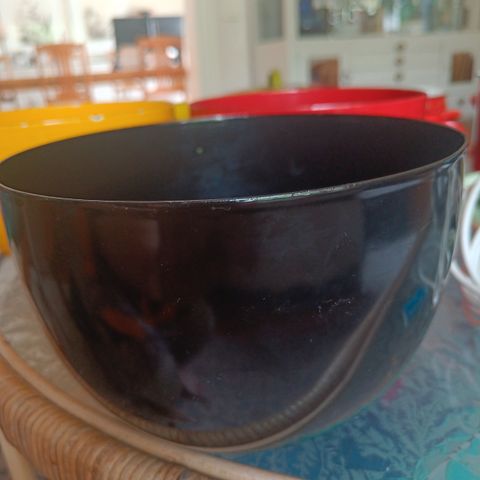 Ulkopuolelta musta, sisältä valkoinen hyväkuntoinen Finel -tarjoilukulho. Halkaisija 26,5 cm, korkeus 9 cm. Kulhon hinta 35 eur.