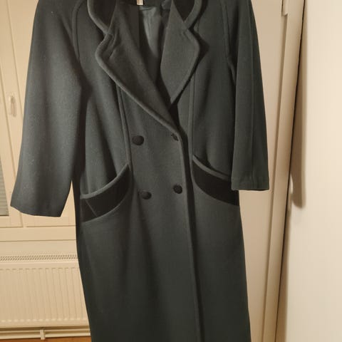 Musta erittäin hyväkuntoinen ja vähänkäytetty villakangastakki (75% villaa + 25% polyesteri), koko 42.