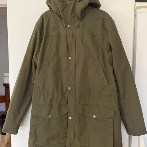 Fjällräven Greenland Winter Parka takki viileisiin säihin. Takin sisäpuolella on lämmin teddy-vuori ja takin ulkokangas pitää tuulen ja sateen loitolla. Takki on lähes virheettömässä kunnossa.