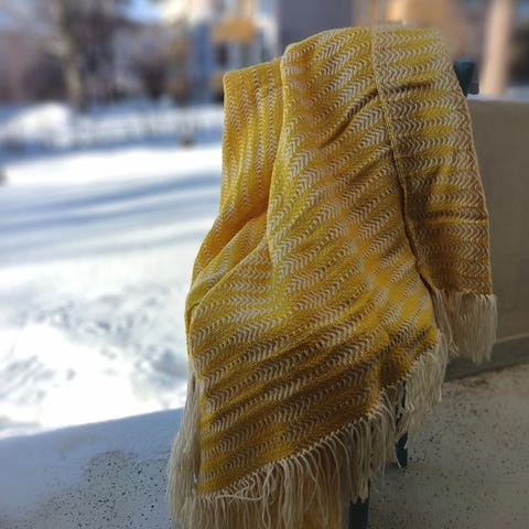 Käsintehty lämmin ja pehmeä tummanharmaa villahuopa, jossa koristeelliset tupsut reunoissa. Sopii sisustukseen ja lämmikkeeksi esimerkiksi sohvalle tai nojatuoliin.