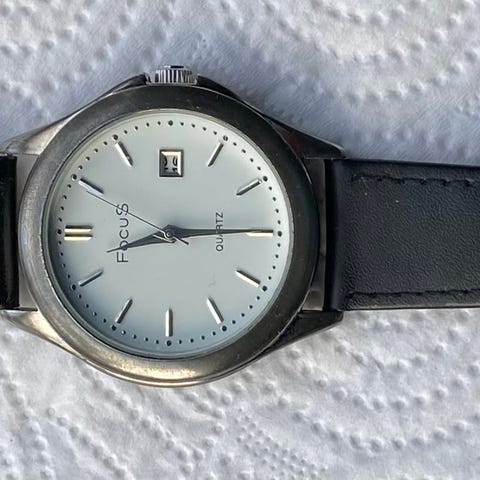 -Siisti ja toimiva mustatauluinen Focus Finlandia miesten rannekello.Täysin ruostumatonta terästä.Kellossa on toimiva paristo.Käy tarkasti aikaa.Koko nuppiin noin 38mm.Katso kuvat ja muutkin myyntini Torissa.Selkä kellotaulu. Ei koloa kuorissa. Virheetön teräsranneke.