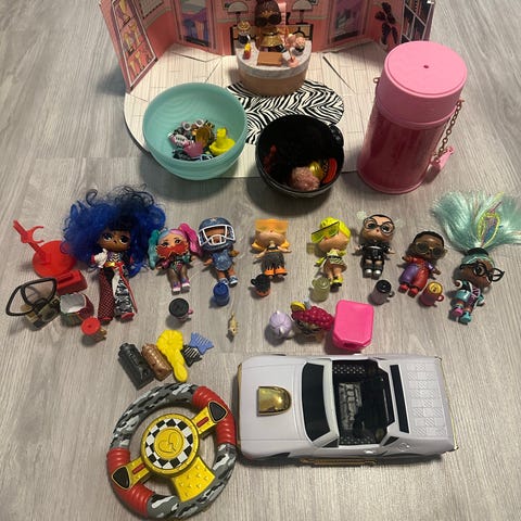 L.O.L. Surprise lasten lelujen kokoelma sisältää useita erilaisia nukkeja, asusteita ja leikkikalujen osia. Kokoelma sisältää myös leikkiauton ja erilaisia pienesineitä, jotka on valmistettu muovista. Soveltuu lasten leikkeihin ja keräilyyn.