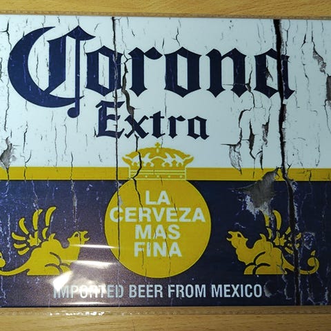 Peltikyltti, olutaiheinen,Corona vaikka baariin, autotalliin, äijäluolaan, mimmiluolaan tai miksei olohuoneeseen.