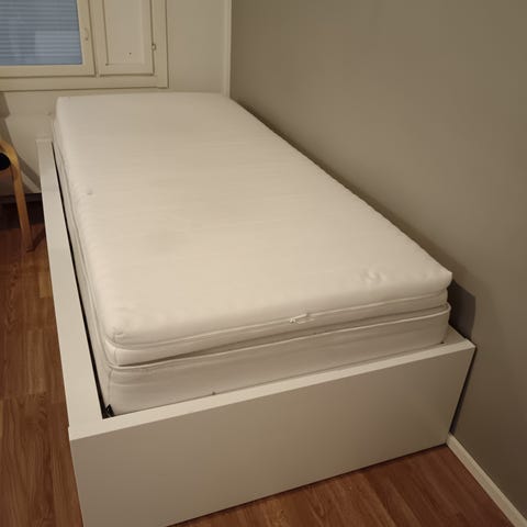 Myytävänä myös uusi patja (avaamattomassa rullapaketissa) Ikea.