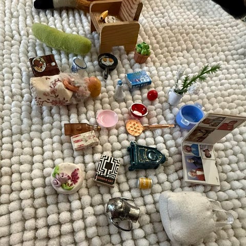 Lundby ja muita valmistajia. Vuosia sitten myydystä suuresta nukkekotikokoelmasta jääneitä pikkutavaroita setti. Laitan myyntiin niitä tällaisina sekalaisina paketteina edullisesti, en valitettavasti myy erikseen tai ehdi etsimään mitään tiettyä esinettä.
