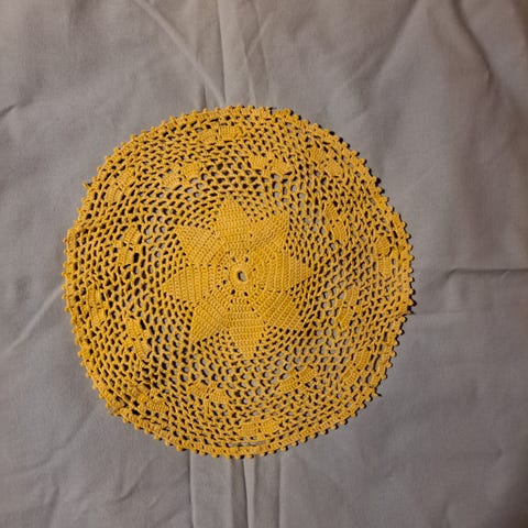 Todella hienot pienet pöytäliinat tai koristeet kukkaruukkujen alle.