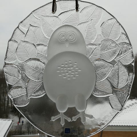 Lasinen ikkunakoriste, hylje, nuutajärvi, lasikoriste, vintage, seinälautanen, koristelautanen