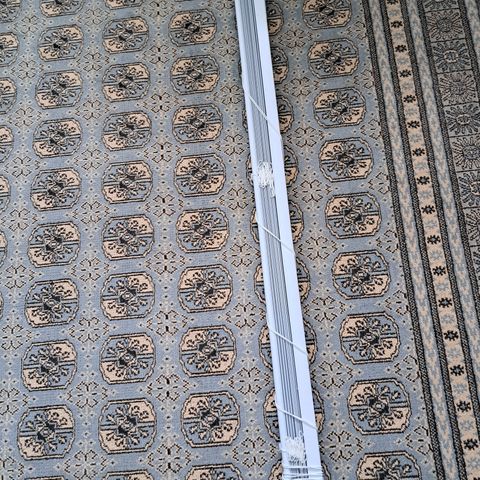 Muovi/pelti valkoiset perus säleverhot. Leveys 150 cm Ja pituus 160 cm. Säleen leveys 2,5 cm. Pölyiset mutta käyttämättömät, mmm