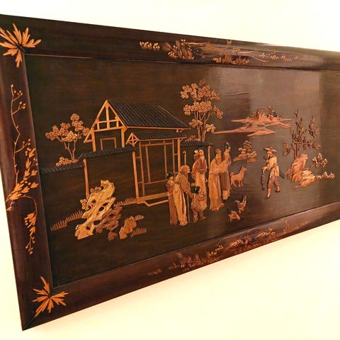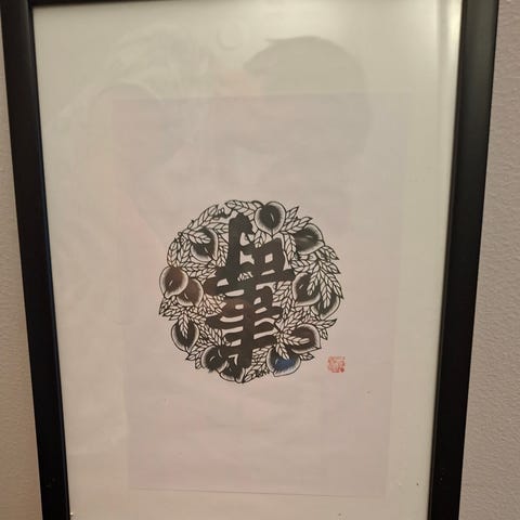 Punainen kiinalainen paperileikkaus. Merkki "Fu" tarkoittaa onnea, onnellisuutta ja vaurautta