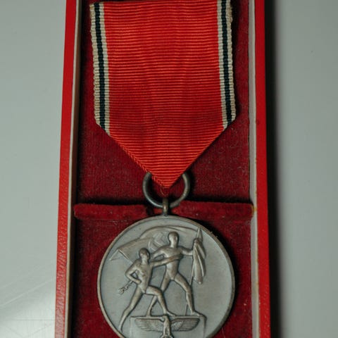 Loistokuntoinen takaneulakiinniteinen A.H. rintamerkki.
