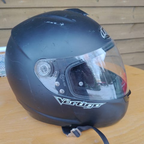 Kypärä S 55-56 cm. Ehjä ja toimiva, meillä ei enää tarvetta. Säilytetty sisällä.