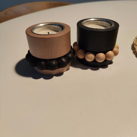 Tuikku Pouta, suunnittelijaMarianne Siponmaa, koko: halkaisija 8 cm, korkeus 6,5, materiaali koivu, metalli. 2 kpl!