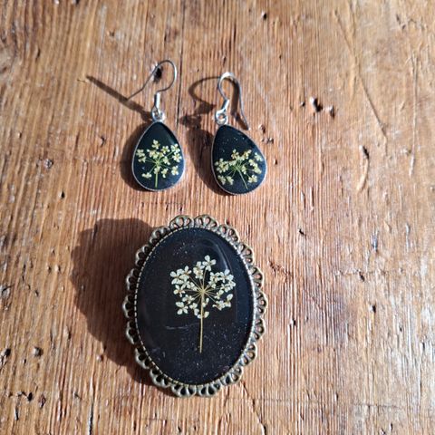 Suomalaista kasvikauneutta kivikoruissa. Kaksi ajatonta, entisen Koruniemen korua, materiaali akaatti, hopea ja teräs. Käyttämättömät.