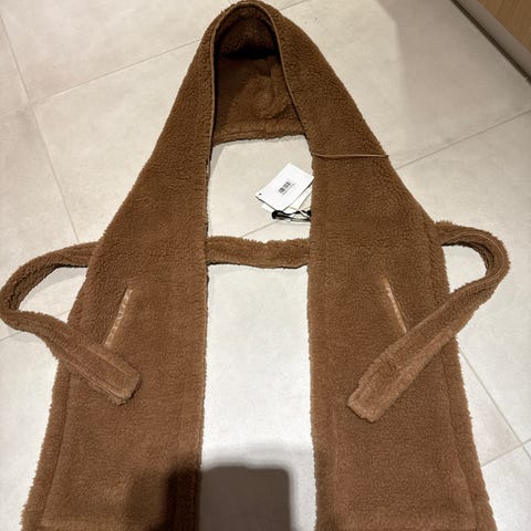 MaxMaran erittäin pehmeä ja lämmin kaksipuolinen kashmir-villasekoitehuivi. Erittäin pitkä ja tyylikäs, mitat 220 cm × 20 cm. Valmistajan laput on poistettu käyttömukavuuden vuoksi. Käytetty vain muutaman kerran, käsin pesty.