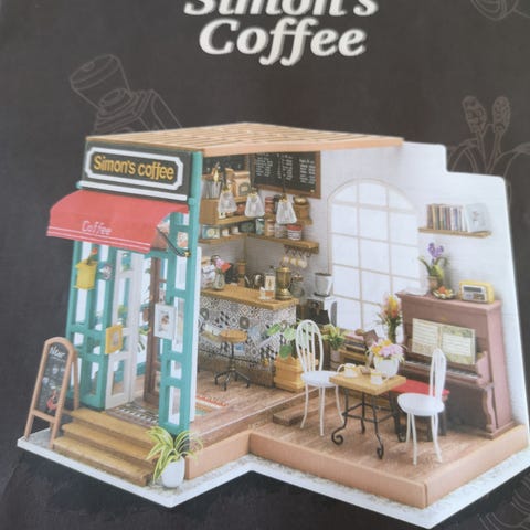 Anavrin Garden Cafe tee- ja kahviminiatyyritalo, jossa on yksityiskohtainen puutarha- ja kahvilateema. Miniatyyrissä on pieniä huonekaluja ja koristeita, jotka jäljittelevät kahvilan sisustusta ja puutarhaa. Sopii koristeeksi tai keräilyyn.