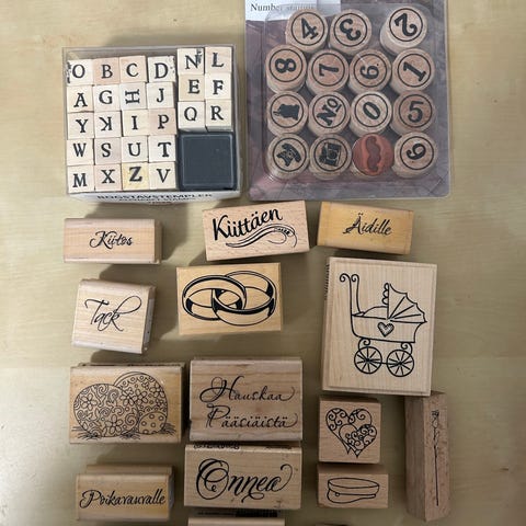 Heartfelt Creations leimasinsetti sisältää erilaisia leimasimia ja tarvikkeita askarteluun. Setissä on useita kuvioita ja koriste-elementtejä, jotka soveltuvat korttien ja muiden paperiaskartelujen tekemiseen. Lisäksi muita samantyylisiä leimasimia. Mukaan saa akryylipalan, jos tarvitsee! Myydään settinä.