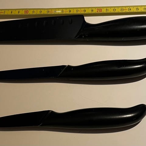 Anno veitset, 4 kappaletta, valmistettu ruostumattomasta teräksestä. Sarja ei enää tuotannossa.