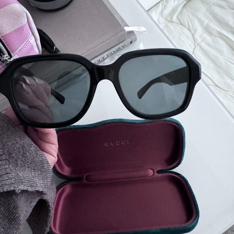 Upeat Gucci naisten aurinkolasit mustilla kehyksillä. Mukana alkuperäinen kotelo. Linssissä liukuväri.