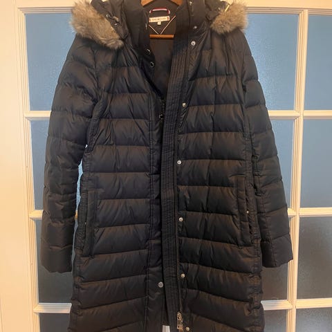 Hyväkuntoinen Tommy Hilfiger naisten untuvatakki. Hupussa irroitettava karvareunus. Myös hupun saa irroitettua. Takin koko XL ja ostettu Stockmannilta. Ovh. n. 300e Nouto tai postitus ostajan maksaessa postikulut.
