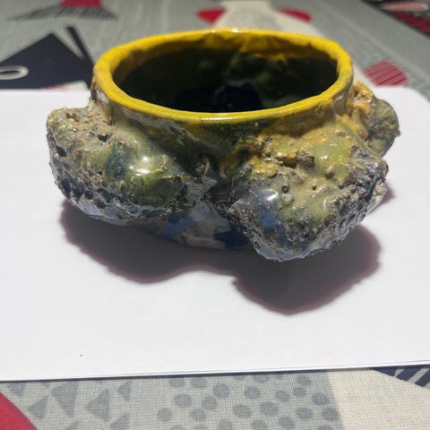 Anu Pentik keraaminen kynttilänjalka, jossa viisi kynttilänpidikettä. Väriltään punainen, sininen, keltainen ja valkoinen. Käsintehty koriste-esine,