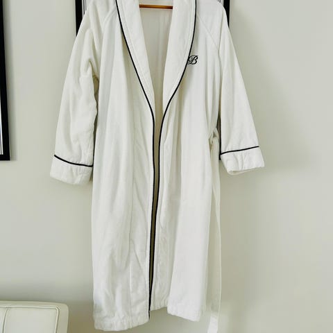 Balmuirin sivulta: ”Portofino-kylpytakki on valmistettu korkealaatuisesta 100% puuvillasta. Kylpytakin kaulusta ja hihansuita koristavat kontrastiväriset tereet ja vasempaan miehustaan on brodeerattu B-logo. ”