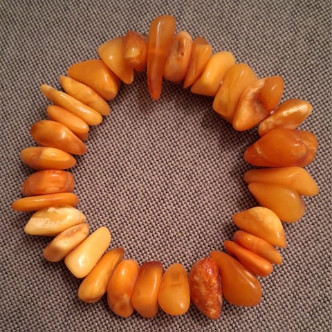 Meripihkarannekoru. Leveys 2 cm, joustavalla nauhalla.