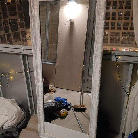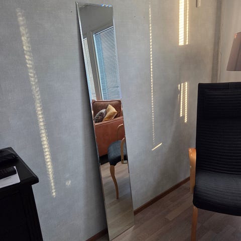 myydään peili. kiinnikkeinä metallikiskot ylös sekä alas. Koko 40cm×99cm.