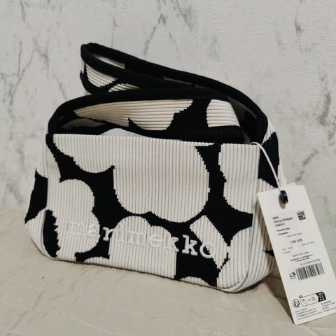 Marimekon hopeanharmaa Unikko crossbody laukku. Vetoketjukiinnitys. Laput kiinni