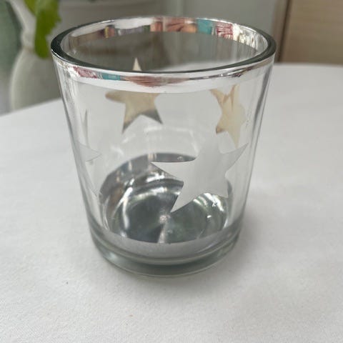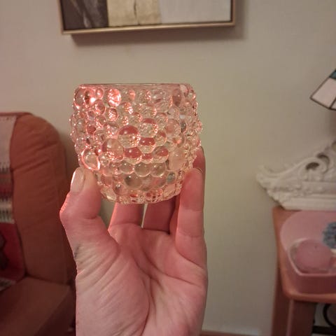 Sininen, hyväkuntoinen kukanmuotoinen tuikkukippo.