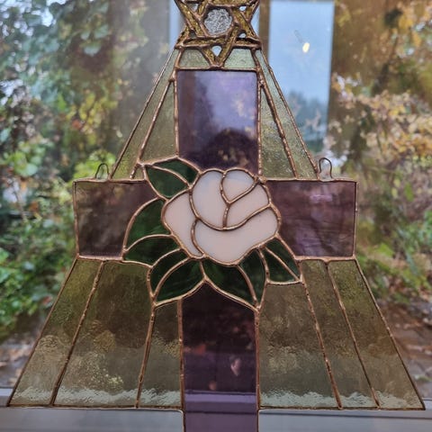 Tiffanytyö. Ripustuskoukut on. Mitat 11x15 cm. Haku H.ki tai Vihti. Toridiili toim. + postikulut ostajalle.