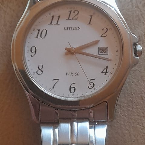Citizen quartz rannekello, ruostumaton teräs, harmaa. Patteri uusittu 9.12.25. Toimii hyvin.