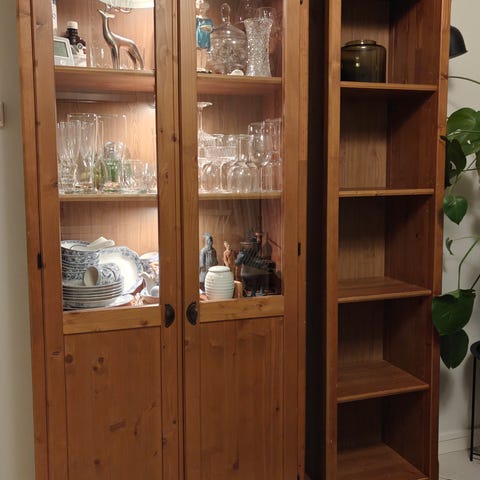 Etsinnässä olisi kulmamallinen vitriinikaappi. Mielellään valkoinen, mutta muutkin värit huomioidaan jos on mahdollista maalata. Tarjoa kuvan ja hinnan kera