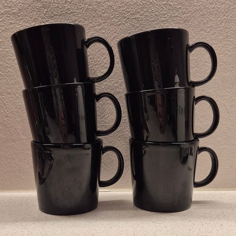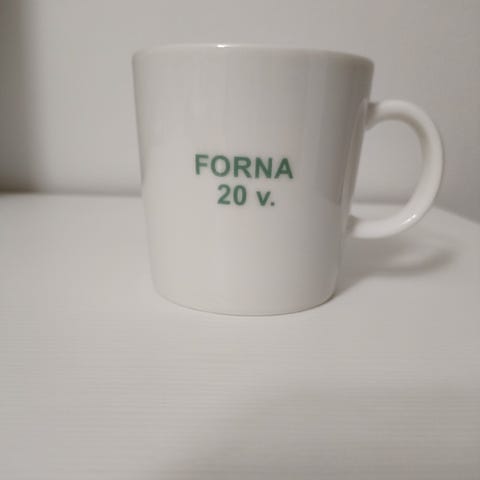 Kaksi Teema-mukia. Valkoinen oikein siisti, vihreässä näkyy hiukan kulumajälkiä ja kahvan alla teksti Flora. 3€/kpl tai 5€ yhteensä/tarjoa.