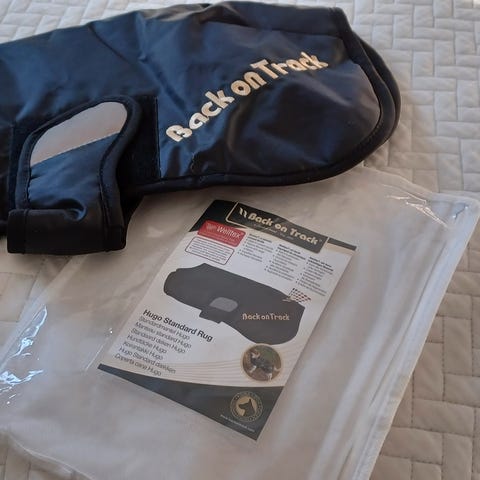 Back on Track takki, uusi, Hurtta toppahaalari, Trixie Friends on Tour polkupyörälaukku, Rukka XS veneilyliivi